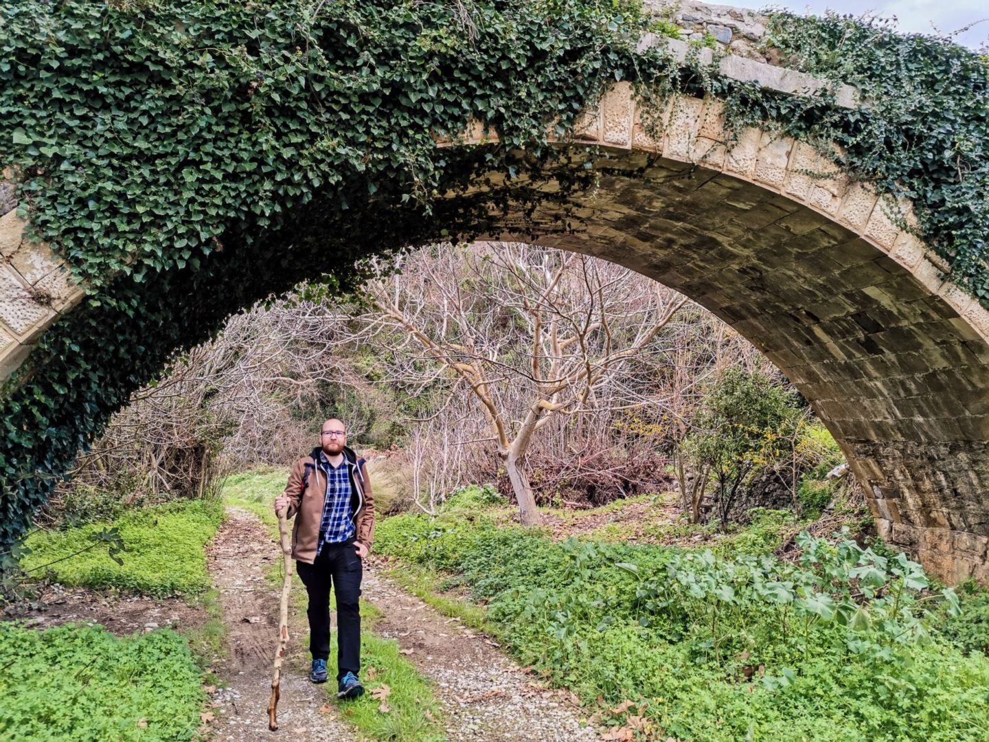 Nechali jsme dary v autě a vyrazili znovu ke kaňonu. Cesta vedla prudce dolů a někde v půlce se z ní spíš stal potok. V Řecku mají dobře řešený zavlažování. Většinou z každého kopce vedou trubky až na místo potřeby. Jenže tady někdo proděravěl jednu hadici a ta se prostě rozlévala cestou nejmenšího odporu, takže po cestě. Než jsme došli k mostu, který symbolizoval vstup do kaňonu, měli jsme boty úplně durch.