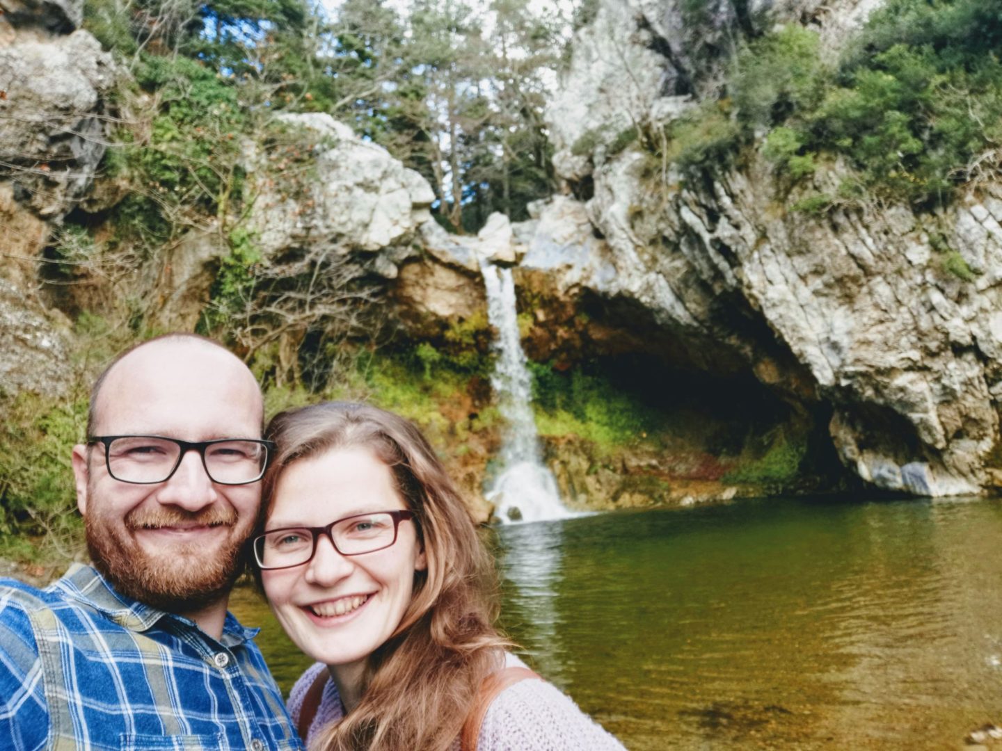 První noc jsme chtěli strávit u vodopádů Drymonas, ale nebyl tam žádný signál. Chvilku jsme potmě hledali, párkrát málem zapadli, a pak jsme objevili boží místečko hned vedle jednoho kostelíku. Zůstali jsme tam dva dny. Potřebovali jsme pracovat a navíc zas pršelo. Třetí den odpoledne jsme se koukli na ten vodopád...nebo spíš vodopádek. Vedle vede hezká stezka a je tam i pár míst na piknik s dětskýma prolézačkama. Pro rodinu s dětma jak dělaný!