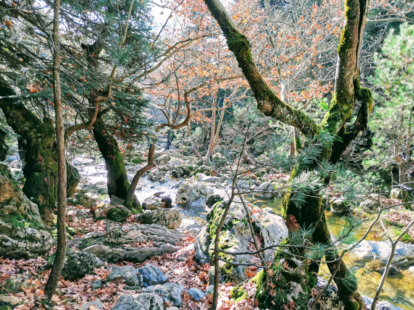 Používáme mapy.cz a google maps. Kdybyste měl někdo lepší nápad na nějaké mapy po Řecku, tak sem s tím! Bohužel ani jedny nejsou úplně optimální. Google maps nám skončily u někoho na dvorku a mapy.cz nás několikrát vedly k cestě přehrazené plotem. Nejsme hulváti, abysme někomu šlapali po pozemku, a tak jsme to otočili zpět k dodávce. I tak jsme ušli kus podél Dimosari a musím uznat, že je to tam moc pěkný. (nepočítám ty odpadky, který občas někdo hodí ze srázu dolů)