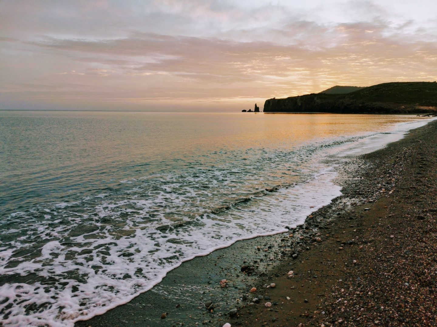 Naše touha po tom znovu vidět moře nás vedla k východnímu pobřeží ostrova. Sjeli jsme z kopce kolem spousty olivových plantáží až na jednu plážičku, kde nás celý další den rušilo jen pár rybářů a i tu koupačku jsme si dali! Voda nebyla zrovna nejteplejší, ale na opláchnutí dobrý. Navíc má výborný účinek jak na vlasy, tak na pleť.