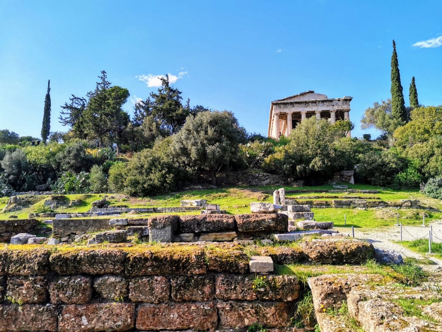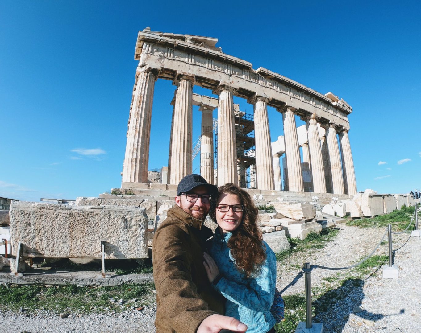 V sobotu nás čekala prohlídka centra Athén! Nikdy jsme tam ani jeden z nás nebyli, tak jsme to vzali přes to nejznámější - první Akropolis, pak římská a řecká Agora. Bylo krásně, jen trochu fučelo a my se po několika hodinách procházení po památkách moc necítili dobře. A na to jsme se ještě brutálně přejedli v jedné restauraci! Ti Řekové vůbec nemají míru, kolik se toho do jednoho člověka může vejít! A to jsme si dali předkrm na půl jen na ochutnání! (Pro kuchařky inspirace: byl to feta obalovaný v sezamu a politý medem, mňamka!)