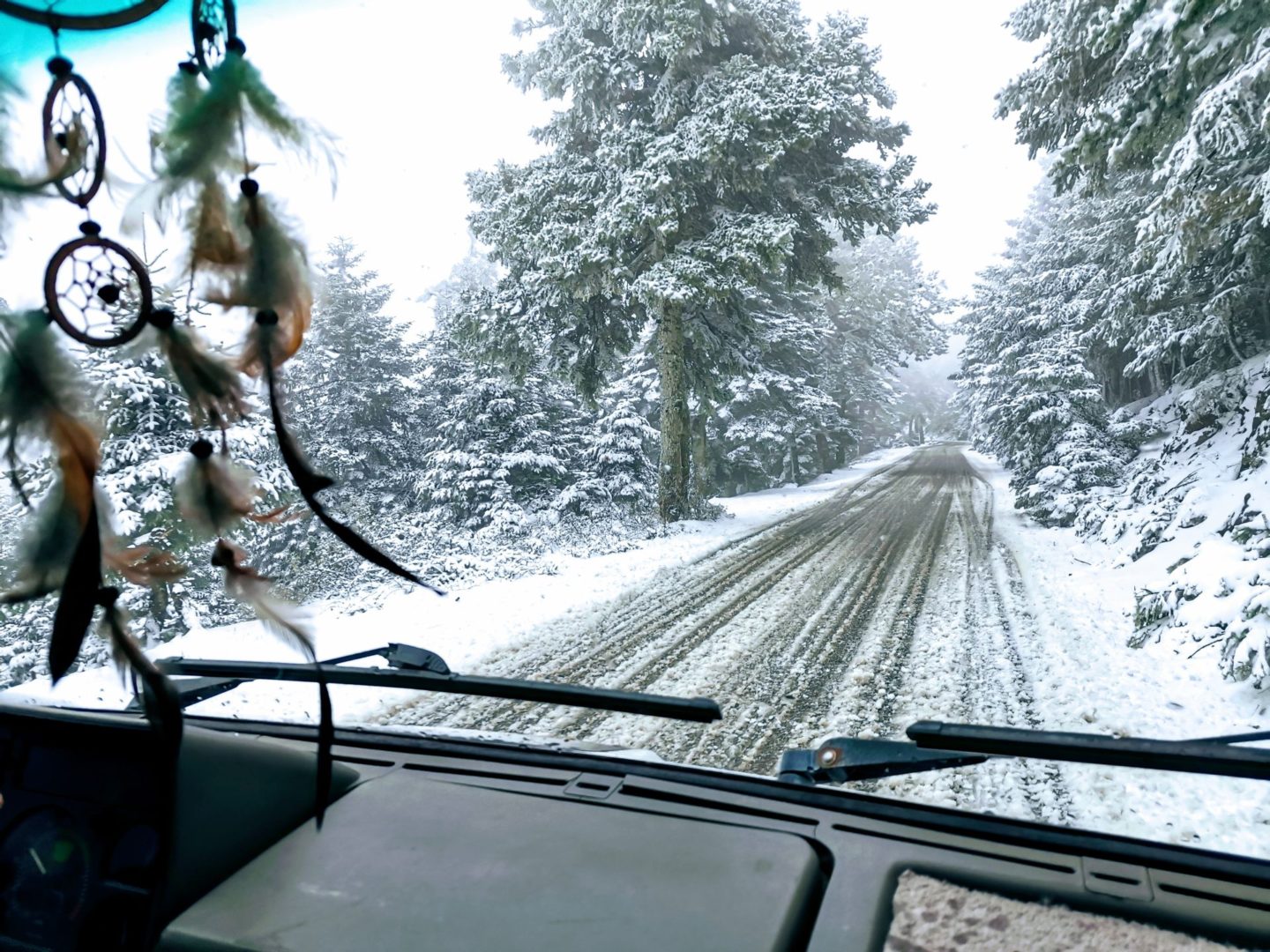 Náš vánoční výšlap nám úspěšně překazilo počasí, a tak jsme se zahřívali v autě a hráli hry. Někdy odpoledne jsme po několika pokusech úspěšně nastartovali a vyrazili jsme. Chtěli jsme se dostat zas někam níž, ale když už jsme tu, tak prej že se vyjedeme podívat ještě výš, že tam možná budou nějaký výhledy. Kolem nás ten ranní sníh už skoro ztál, a tak nás ani nenapadlo, že to výš bude jiný.