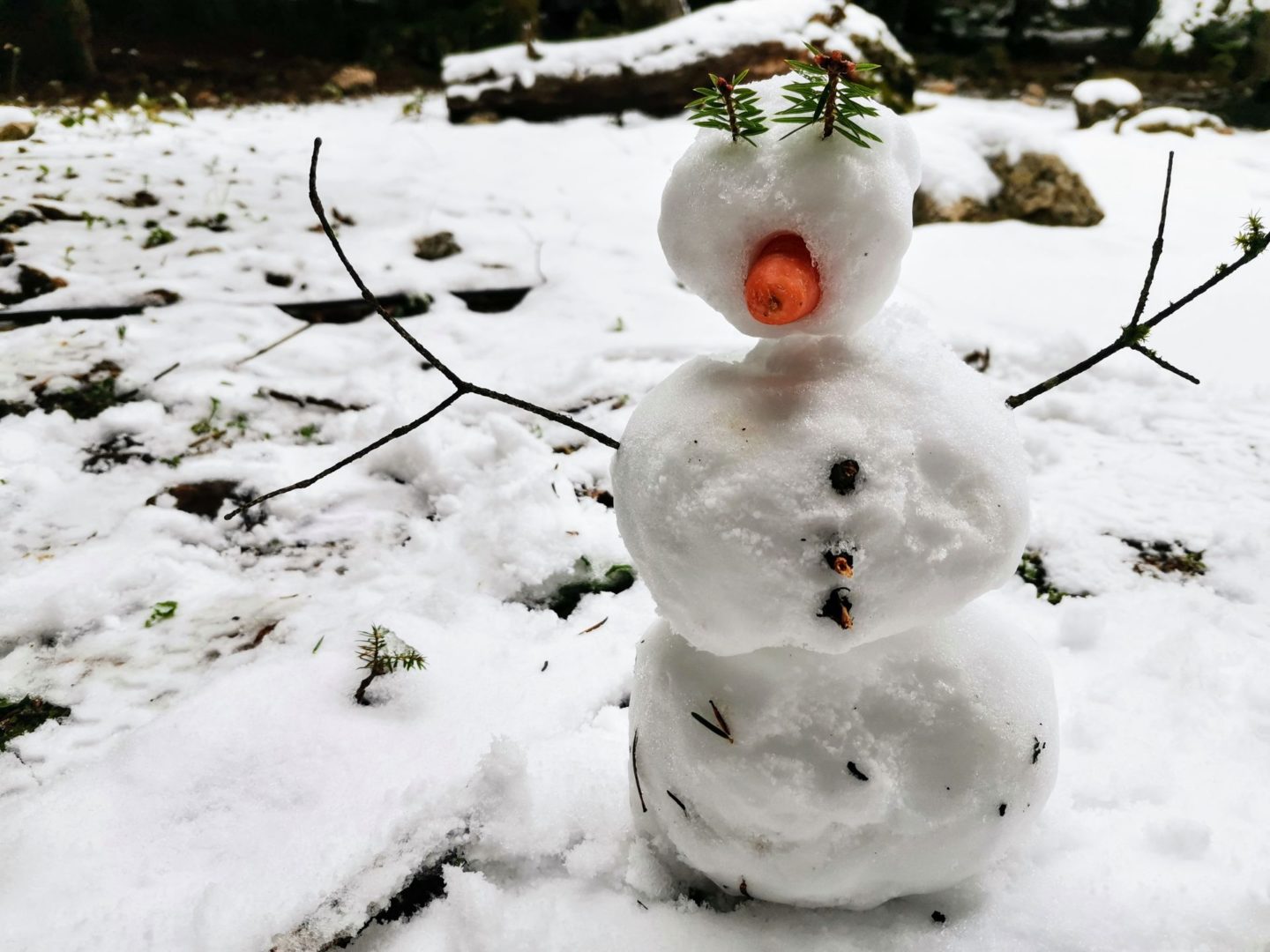 Po cestě dolů jsme postavili sněhuláka a posadili ho na kapotu, jede teď s námi! Potkávali jsme i několik nadšenců opakovaně, co měli 4x4 a zjevně se té trochy sněhu nemohli nabažit. Vjížděli do lesa po měnších cestičkách a prostě si užívali terén.