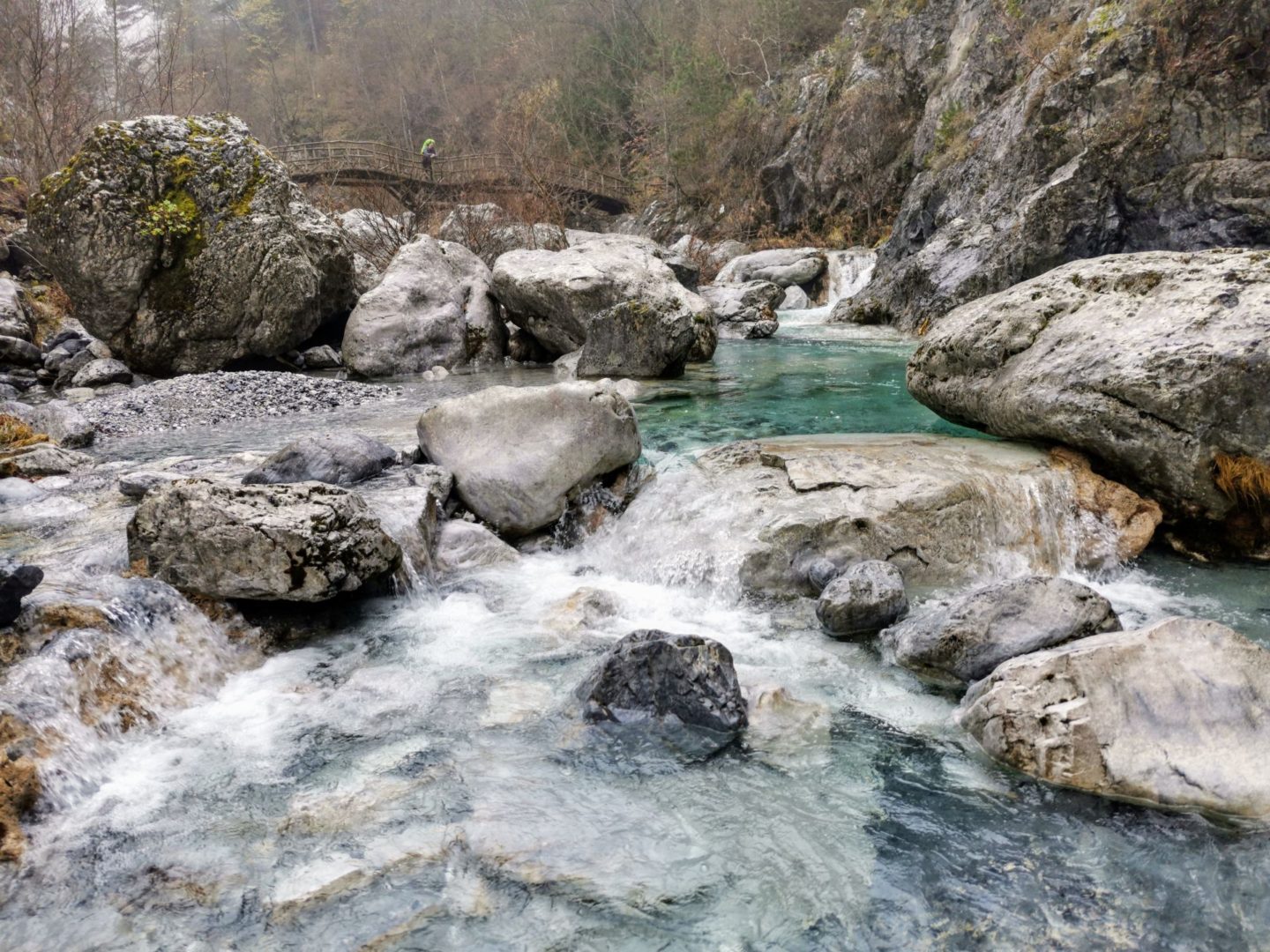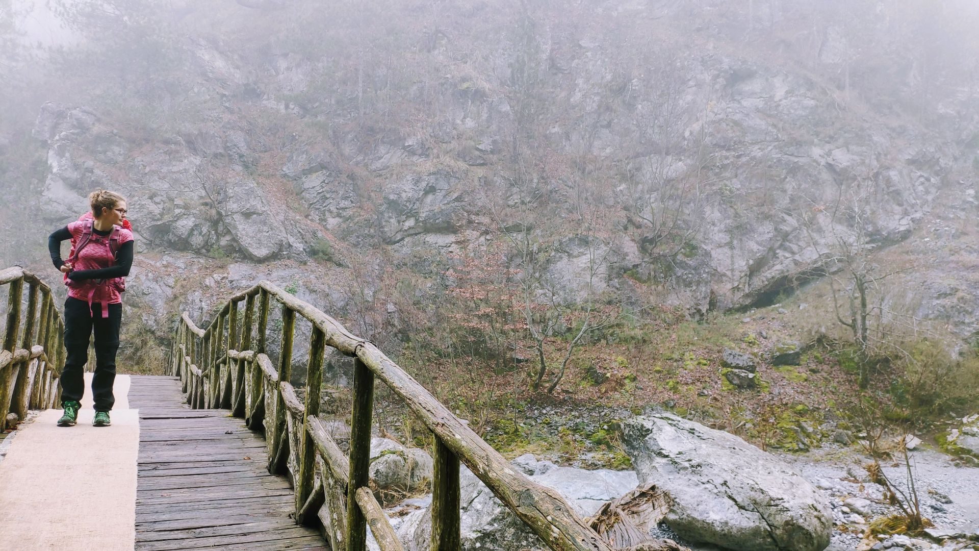 Cesta vedla kaňonem, kdy se chvíli šplhalo po skalkách a hned na to dolů. Potkali jsme několik téměř shnilých mostů přes řeku a menší přítoky prostě přeskákali. Celou dobu byla mlha a tak ze slibovaných výhledů nebylo skoro nic. Ale i tak jsme si to užili, byl tam úplně božský klid - na to, že v létě to je nejspíš úplně narvaný turisty!