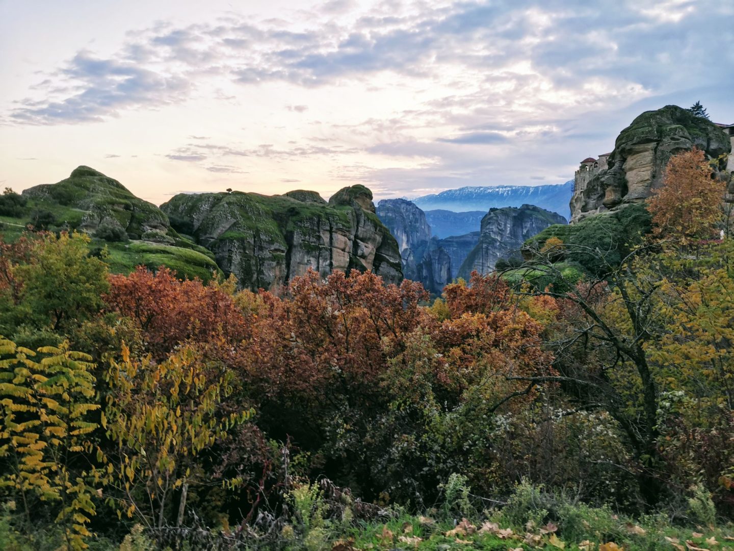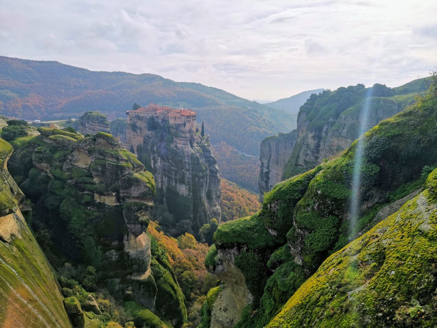 Pak jsem se s nima rozloučila a běžela zpátky za Leem, že ho vytáhnu ven, ať z toho taky něco má. Přejeli jsme na parkoviště kousek od klášteru Varlaam a akorát si užili výhledy a západ slunce.